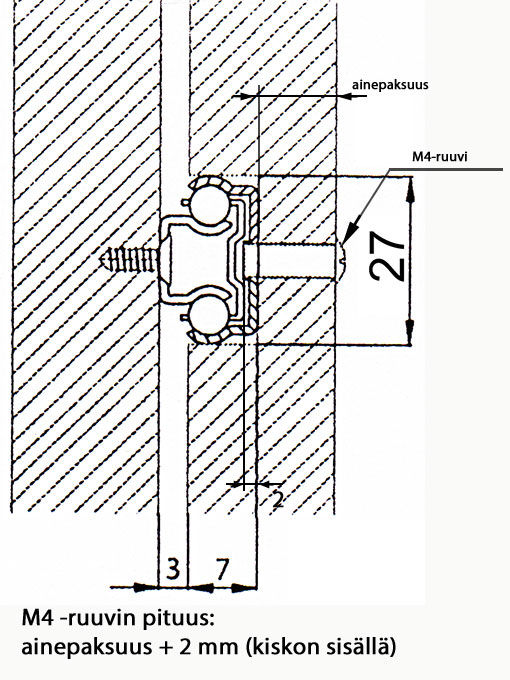 Kiinnitetään kuten mikrokiskokin, mutta 27 mm uraan M4-ruuvilla. Kiinnitys runkoon euroruuvilla 5,8x8, 5,8x11 tai uppokantaruuvilla 3,5x15.