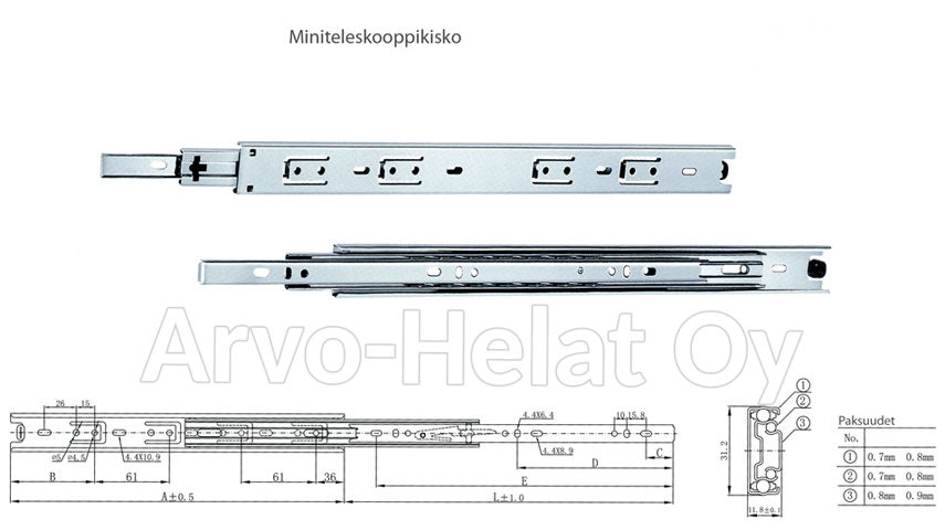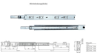 (Kisko on kokonaan ulostuleva, eli pituus avattuna on ylläoleva kiskon pituus kerrottuna kahdella.)