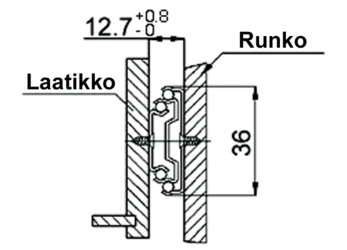 Kiinnitys laatikkoon kiskoruuvilla 4,2 x 9,5 tai uppokantaruuvilla 3,5 x 15 mm