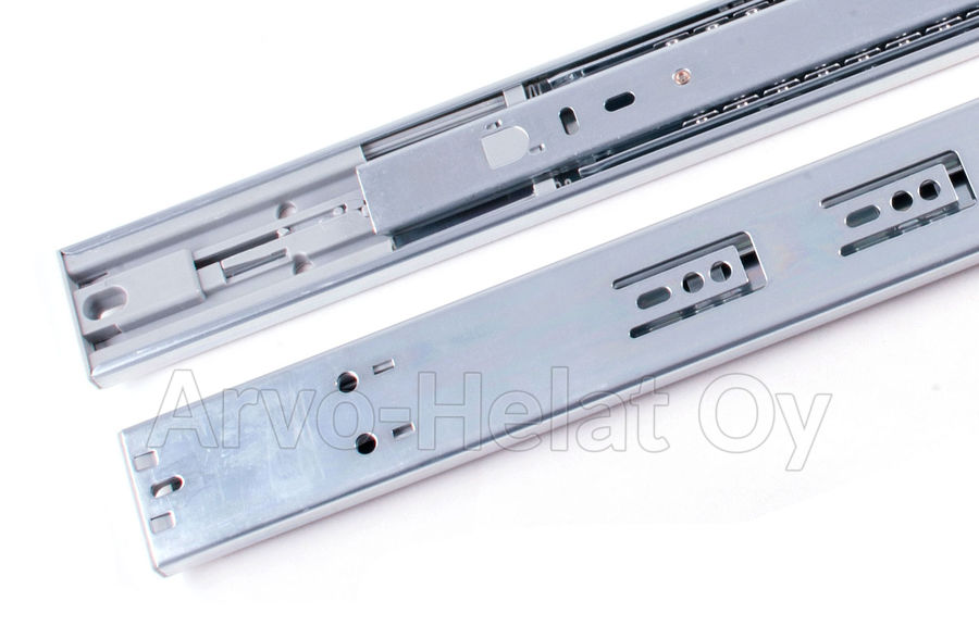 Haluatko vetimettömät laatikot? Ponnahtavassa kiskossa on jouset, jotka työntävät kiskon/laatikon auki sitä painettaessa sisäänpäin n. 2,5 mm. Laatikkoa suljettaessa täytyy laatikkoa painaa kiinni jousivoimaa vastaan n. 4 cm, jolloin laatikko lukittuu kiinni asentoon.
