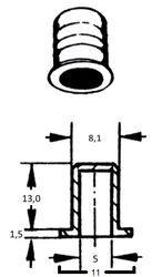Plastic bushing, Ø 8/5 x 14,5 mm, white
