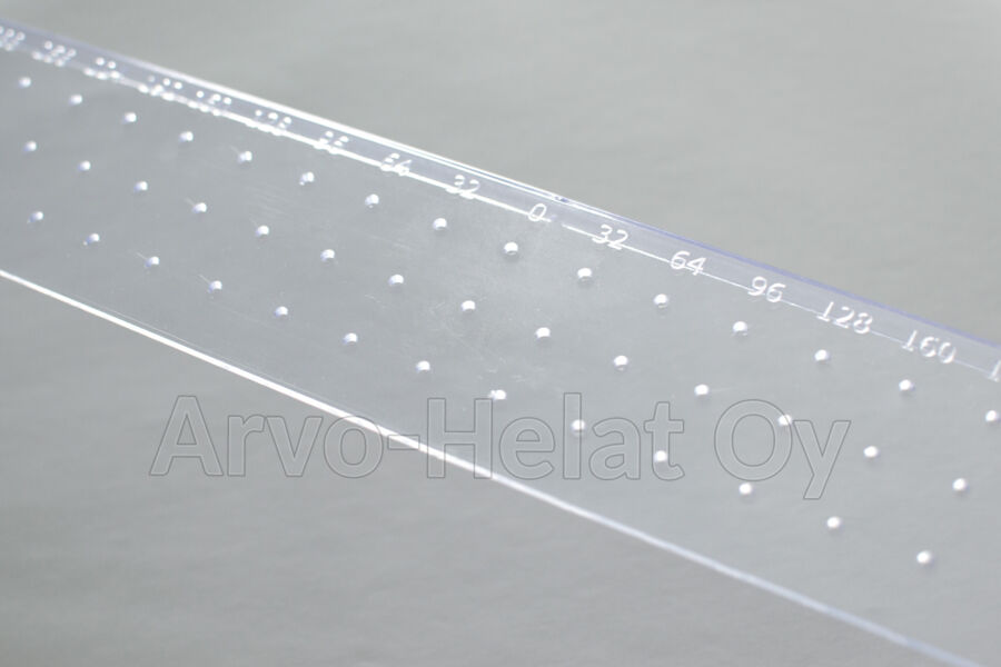 [375407]Vetimien poraussapluuna tekee reikävälin poraamisesta vaivatonta. Jos haluat reiät esimerkiksi 64 mm reikävälille, valitse sapluunasta ne kaksi saraketta, joissa lukee 64.